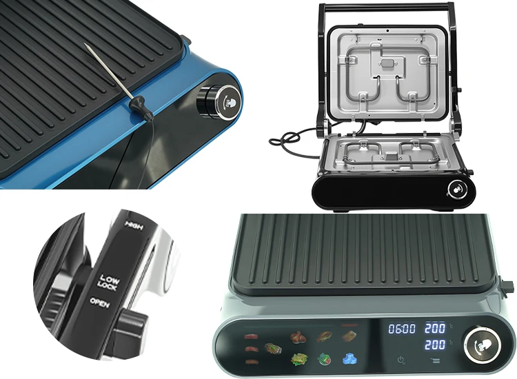 Digital Temperature Probe Touch Screen Electric Barbecue Griddle Grill Detachable Plate Smart Steak Doneness Contact Grill